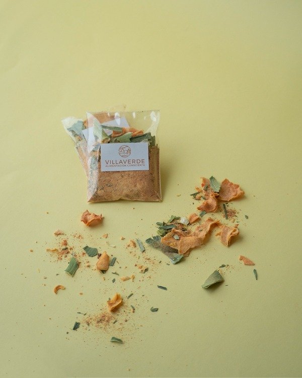 Ingredientes: calabaza, zanahoria, puerro, levadura nutricional, cúrcuma, pimentón, ajo y jengibre.